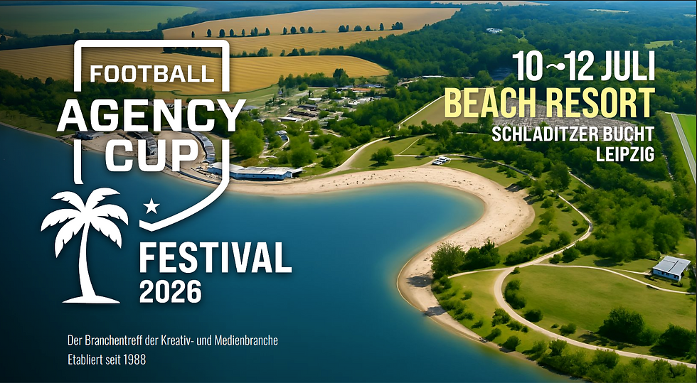 Der Football Agency Cup ist seit über 35 Jahren der Branchentreff der deutschen Kreativ, Medien und Marketingbranche. 2026 entwickelt sich das Event weiter zum Football Agency Cup Festival an der Schladitzer Bucht bei Leipzig, mit Fußballturnier, Festivalgelände, Beachpartys und neuen Formaten wie der Speakers Stage.